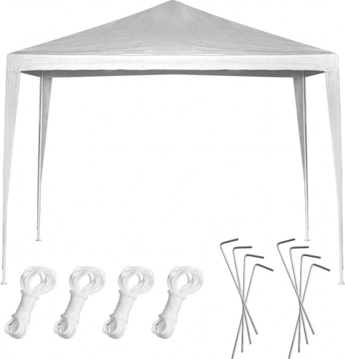 Montáž je rychlá a intuitivní – v balení najdete vše potřebné k sestavení, včetně kolíků a šňůr pro ukotvení. Neutrální bílá barva se snadno sladí s jakýmkoli prostředím a dodá akci čistý, elegantní vzhled.
