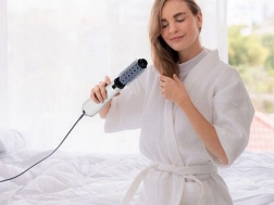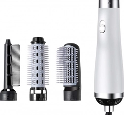 Součástí balení jsou tři výměnné koncovky: kulatý kartáč, plochý kartáč a hřeben, které poskytují univerzální a flexibilní možnosti stylování. Otočný kabel dodává volnost a pohodlí pohybu během používání.