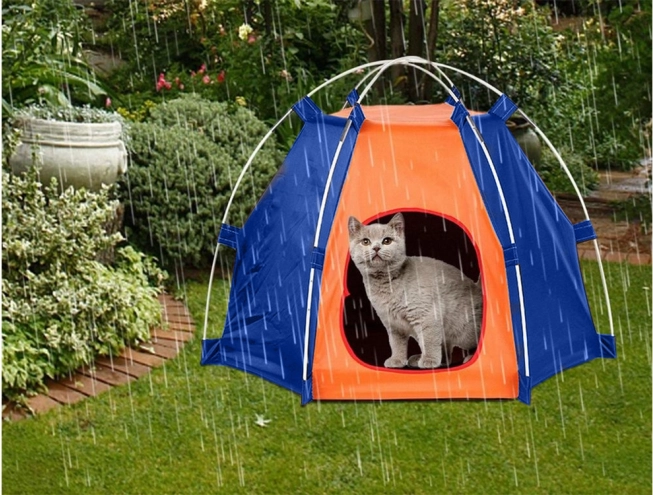 Praktický stan pro psy a kočky vytvoří pohodlné útočiště během odpočinku i cestování. Odolná textilie chrání před deštěm a vlhkostí, zároveň poskytuje příjemný stín proti slunci, takže je mazlíček v suchu a pohodlí. Oblý vstup usnadňuje průchod a vzdušná konstrukce podporuje cirkulaci vzduchu.