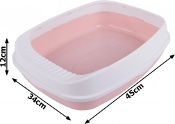 Praktická a prostorná kočičí toaleta s rámem a lopatkou pro snadnou údržbu. Díky otevřené konstrukci a vysokým okrajům účinně omezuje nepořádek kolem. Je vyrobena z odolného plastu, má hladký povrch pro rychlé čištění a díky rozměrům 45 × 34 × 12 cm se hodí i pro větší kočky.