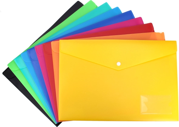 Tato složka je vyrobena z měkkého plastu, což zajišťuje její snadnou omyvatelnost a dlouhou životnost. Praktické zapínání na druk udrží všechny vaše dokumenty bezpečně uvnitř a zabrání jejich ztrátě.