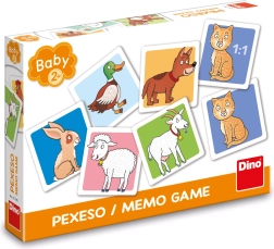 Dino Baby pexeso domácí zvířátka nabízí klasickou zábavu v podobě hledání dvojic. Tento paměťový pexeso je navrženo speciálně pro předškolní děti. Díky pevným a velkým kartičkám o rozměru 6,5 x 6,5 cm je manipulace s kartičkami jednoduchá i pro malé ručičky.