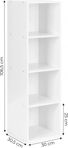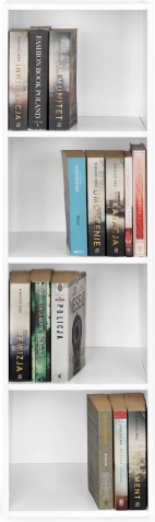 - 4 prostorné police – na knihy, dekorace i koupelnové doplňky