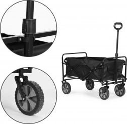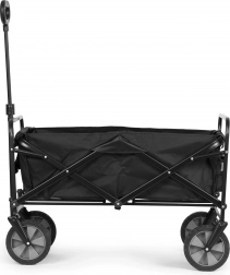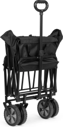 Velká kola s gumovým běhounem a otočná přední náprava zajišťují snadné manévrování i při plném zatížení. Široké teleskopické madlo poskytuje jistý a pohodlný úchop. Po použití vozík během chvilky složíte do kompaktních rozměrů pro snadné uložení i převoz autem.