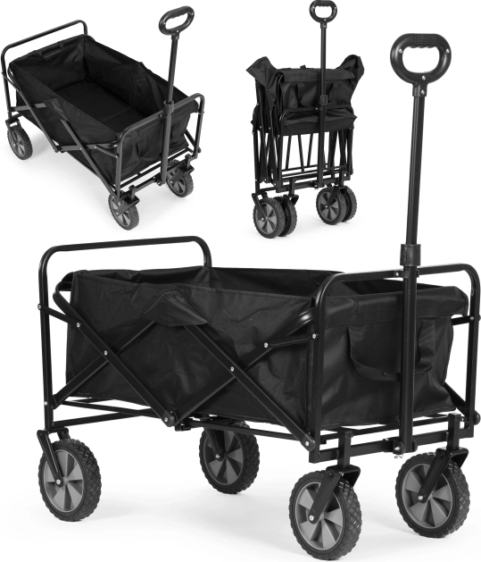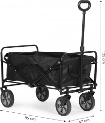 Hledáte spolehlivý vozík pro každodenní použití? Tento skládací přepravní vozík je ideální na zahradu, na pláž, do parku i na nákupy. Stabilní kovový rám, prostorná ložná plocha 85 × 47 cm a nosnost 70 kg zvládnou nářadí, zavazadla i objemné nákupy.