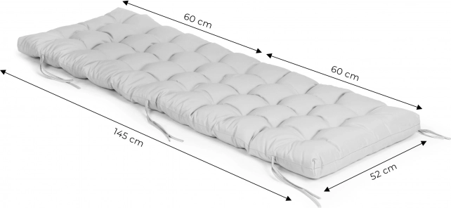 Odolná tkanina je snadno udržovatelná, odolná proti oděru a blednutí a připravená na venkovní použití. Dlouhé upevňovací pásky po čtyřech stranách zabraňují sklouzávání a udrží polstr přesně tam, kde potřebujete. Neutrální šedá barva se snadno kombinuje s většinou zahradního nábytku.