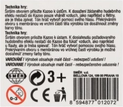 Plastová konstrukce je odolná a díky délce 12 cm se kazoo snadno přenáší v kapse nebo batohu.