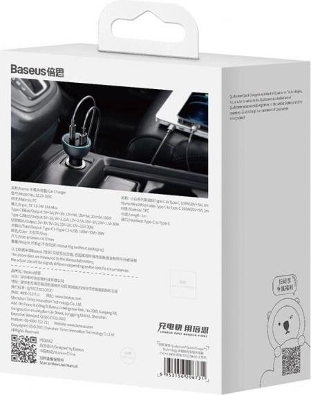 Baseus nabíječka do auta poskytuje vysoký výkon a umožňuje rychlé nabíjení až tří zařízení zároveň díky portům USB-C a USB. Technologie Quick Charge 5 zaručuje rychlé a spolehlivé dobití vašich zařízení.