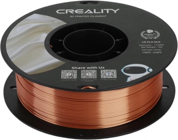 CR-PLA Silk od značky CREALITY je ideální volbou pro dekorace, figurky i designové doplňky, kde vynikne elegantní měděný lesk a hladký povrch. Pečlivé navíjení zajišťuje bezproblémové odvíjení bez zamotání a stabilní tisk v rozmezí 40–100 mm/s.