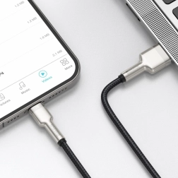 Konektory ze slitiny zinku odolávají oxidaci a vyblednutí, pevné opletení chrání vnitřní jádra a zajišťuje dlouhou životnost. Kabel zároveň podporuje synchronizaci souborů rychlostí až 480 Mb/s, takže fotografie, videa i dokumenty přenesete během chvilky.