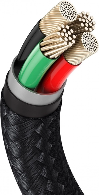Kovové konektory ze slitiny zinku odolají oxidaci, zatímco pevné nylonové opletení chrání vnitřní vodiče před zlomy a oděrem. Kabel je stavěný na každodenní používání.