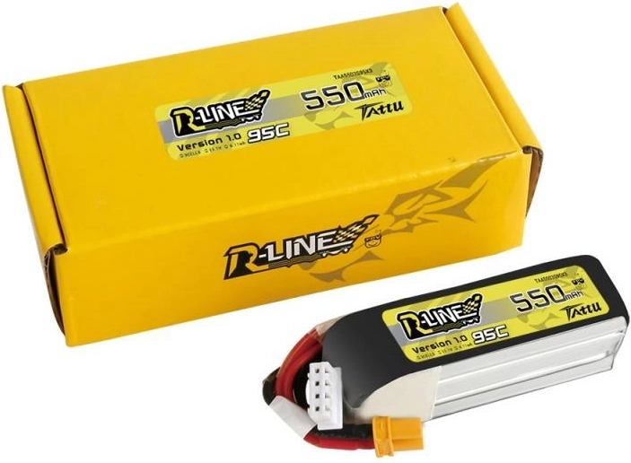 Tattu R-Line je řada baterií navržená speciálně pro UAV a FPV závody. Články jsou optimalizované pro stabilní dodávku proudu i při vysokém zatížení, což přináší konzistentní výkon a jistotu v kritických manévrech. Kapacita 550 mAh a napětí 11,1 V (3S) v kombinaci s vybíjecím proudem 95C poskytují výborný poměr hmotnosti a výkonu.