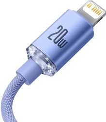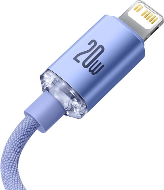 Stylový kabel Baseus Crystal s konektory USB‑C a Lightning nabídne rychlé nabíjení PD 20 W, přenos dat až 480 Mb/s a odolné opletení v elegantní fialové. Díky délce 2 m, chytrému čipu pro bezpečné nabíjení a kvalitním hliníkovým konektorům je ideální volbou pro zařízení Apple.