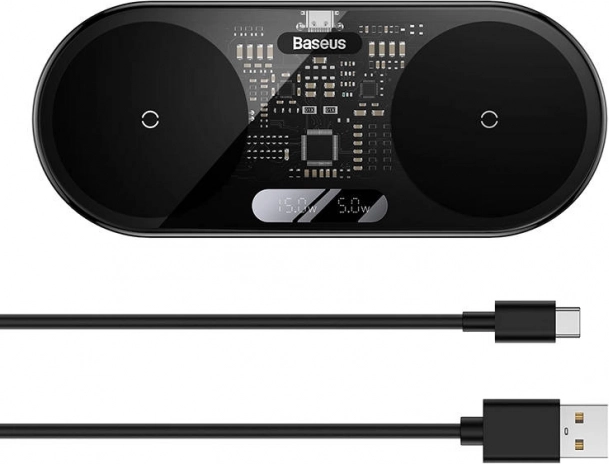 Bezdrátová nabíječka Baseus poskytuje rychlé a efektivní nabíjení dvou zařízení současně, a to jak pro zařízení s iOS, tak Android. Je vybavena digitálním LED displejem, který zobrazuje aktuální výkon nabíjení.