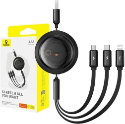 BASEUS Free2Draw je chytré řešení, které nahradí hned několik kabelů. Tři konektory v jednom těle vám umožní nabíjet až tři zařízení současně, a to s proudem až 3,5 A. Kompaktní navíjecí konstrukce šetří místo v tašce i na stole a brání zamotání.