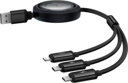 Univerzální kabel 3 v 1 pro všechny vaše zařízení: USB‑C, Micro USB a Lightning v jednom kompaktním, vytahovacím provedení. Podporuje rychlé nabíjení 3,5 A a přenos dat až 480 Mb/s (Lightning). Díky nastavitelné délce a odolné konstrukci je ideální na cesty i každodenní použití.