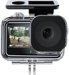 Díky promyšlené ergonomii máte plný přístup ke všem tlačítkům kamery. Přední sklo objektivu z tvrzeného skla odolává poškrábání a zachovává ostrý obraz bez zkreslení, zatímco průzračné kryty displejů z PC materiálu s 95% propustností světla zajišťují jasné náhledy i pod vodou.