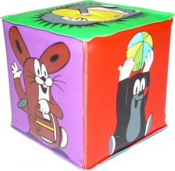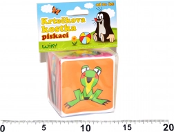 Zábavná pískací kostka pro nejmenší z kolekce s postavičkami KRTEČKA a jeho kamarádů potěší pestrými barvami a měkkým, bezpečným materiálem. Každá strana je jinak barevná a zobrazuje oblíbené hrdiny, kostka při zmáčknutí vydává pískací zvuk, který podporuje smyslové vnímání a pozornost miminka.
