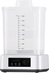 Čisticí koš o objemu 3 l a mycí modul 4 l pojmou tisk až do 165 × 100 × 180 mm (v koši) nebo 165 × 100 × 165 mm (na plošině). Vytvrzovací prostor má Ø160 × 180 mm.