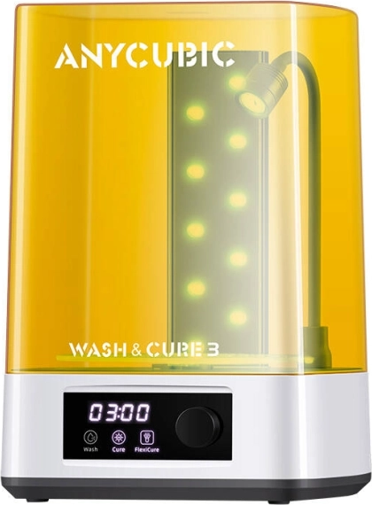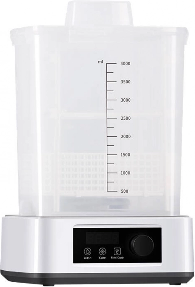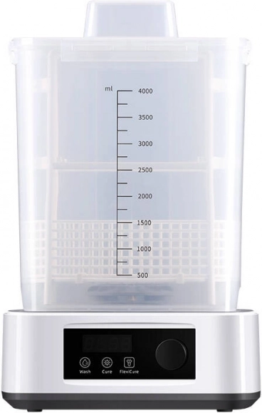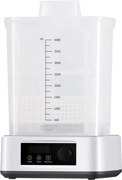 Integrované režimy Wash, Cure a FlexiCure s přiloženou ohebnou UV lampou umožňují přesně doladit i jemné detaily. Ovládání je intuitivní přes dotyková tlačítka a otočný volič, čas lze nastavit v rozmezí 1–30 minut. Zesílená konstrukce a dvouvrstvý PP koš přinášejí vyšší odolnost a optimalizaci spotřeby IPA.