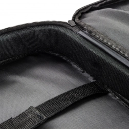 Vnitřní prostor lze přizpůsobit velikosti zařízení díky nastavitelnému pásku. Měkká vnitřní pěna chrání před nárazy a další kapsy umožňují ukládat příslušenství jako kabely nebo myši, abyste měli vše potřebné vždy po ruce.