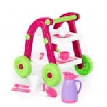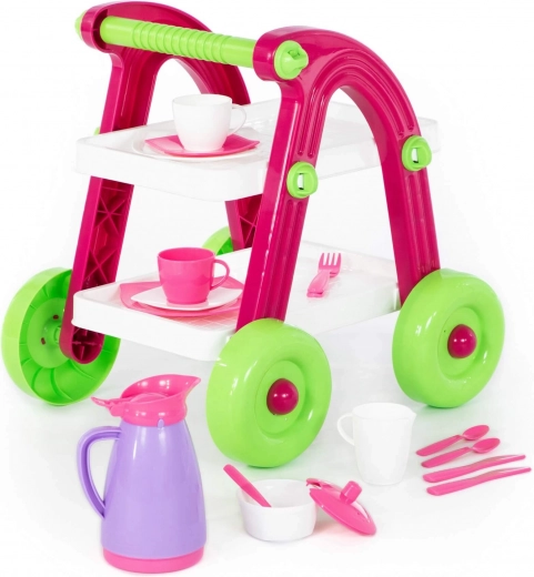 Rozkošný dětský čajový vozík s nádobíčkem přináší hodiny zábavy při hře na hostinu. Díky kompaktním rozměrům a lehké konstrukci se snadno ovládá a je ideální pro malé ručky. Součástí jsou šálky, talířky, konvička a příbory pro kreativní hraní. Bezpečné plastové provedení, snadná manipulace a vhodné pro děti od 3 let.