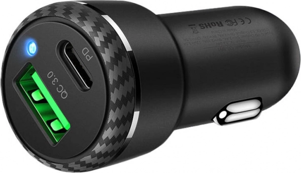 | Rozměry | 60 × 28 × 20.5 mm | Materiál | PC, ABS | Vstupní napětí | DC 12-24 V | Výstupní napětí | USB-A: 5V=2,4A, 9V=2,0A, 12V=1,5A; USB-C: 5V=2,4A, 9V=2,22A, 12V=1,66A | .