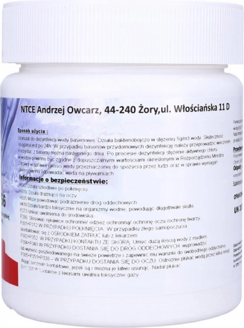 - Doporučené dávkování pro bazénovou vodu: 5 g/m³ vody.
