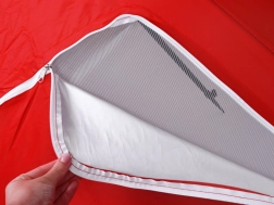 Větrací otvor na vrcholu a dvě boční okna s moskytiérou zajišťují proudění vzduchu a současně chrání před hmyzem.