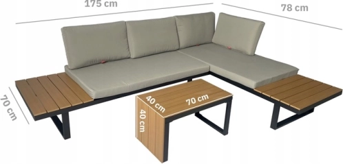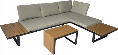Konstrukce: Hliník a kompozitní dřevo zajišťují dlouhodobou odolnost i při intenzivním používání v exteriéru. Tento moderní designový prvek lze snadno začlenit do jakéhokoliv prostředí.