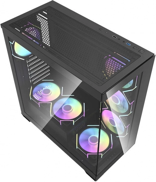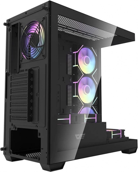 Darkflash DS900 je moderní midi tower navržený pro náročné hráče i tvůrce obsahu. Panoramatické šasi s dvojitým tvrzeným sklem poskytuje čistý výhled na komponenty a ARGB podsvícení, zatímco robustní konstrukce z 0,5 mm SPCC zaručuje odolnost a stabilitu. Součástí je 7× 120mm ARGB ventilátor pro okamžitě účinné chlazení a výraznou estetiku.