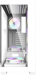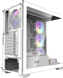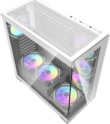 Elegantní a prostorná počítačová skříň Darkflash DS900 v bílé barvě nabízí panoramatický design bez A‑sloupku, dvě bočnice z tvrzeného skla a již osazených 7 ventilátorů ARGB 120 mm. Poskytuje vynikající airflow, podporu velkých 360mm chladičů, kompatibilitu s deskami ATX/M‑ATX/ITX a snadné rozšíření díky 7 PCI slotům a promyšlenému vnitřnímu uspořádání.