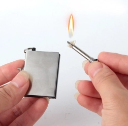 Věčné křesadlo je nepostradatelnou pomůckou pro každého turistu, rybáře a survivalistu. Křesadlo je odolné vůči vodě a použití hořčíkové tyčinky umožňuje vytvořit jiskru o obrovské teplotě až 3000°C! Zápalka je odolná také vůči drsným povětrnostním podmínkám - zapalte oheň kdykoli a kdekoli! Princip fungování je velmi jednoduchý! Nádobu stačí částečně naplnit hořlavou kapalinou (např. petrolej nebo benzín), ponořit do nádoby kovovou zápalku a poté třít ocelovou špičku zápalky o jádro, aby se vytvořily jiskry a způsobily vznícení.