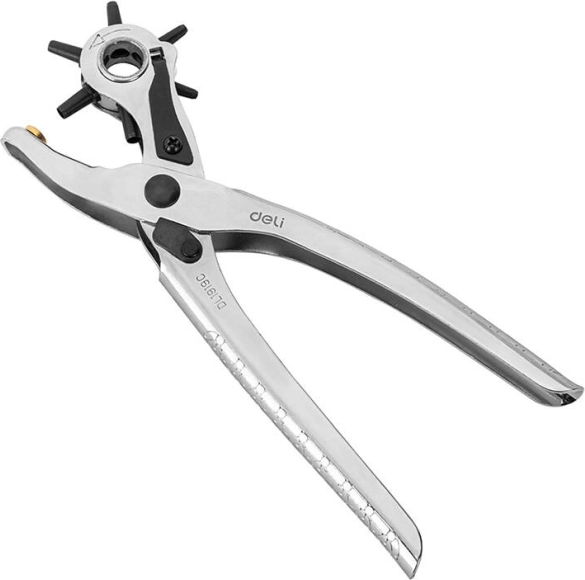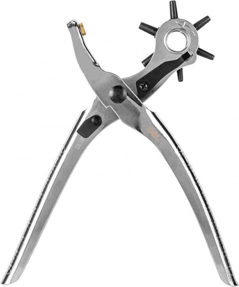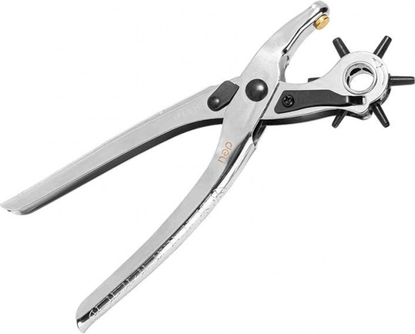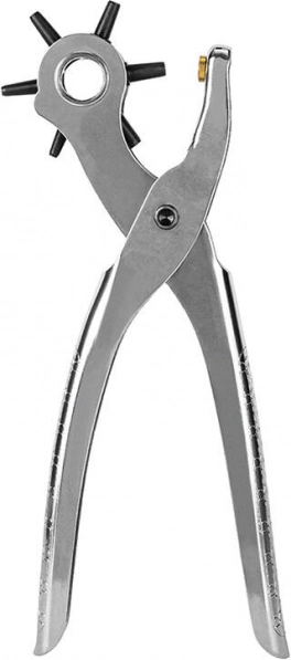 Univerzální děrovací kleště s otočným věncem umožňují rychle zvolit požadovaný průměr otvoru 2 / 2,5 / 3 / 3,5 / 4 / 4,5 mm. Jsou ideální pro úpravy kožených pásků, brašen, obojků, ale i textilií či tenčích materiálů. Ergonomická konstrukce zajišťuje pohodlné a přesné děrování bez třepení okrajů.