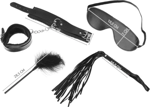 Set obsahuje vše potřebné pro různé typy BDSM her, od jemného dráždění až po smyslné zápasy.