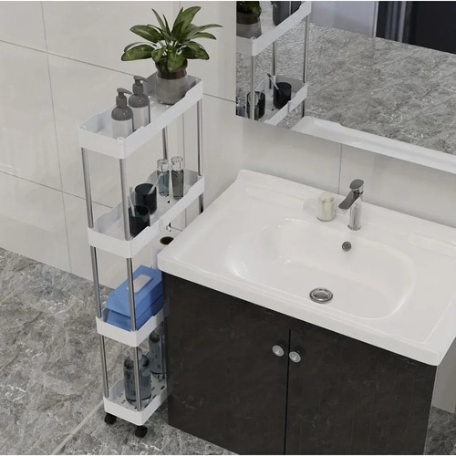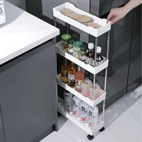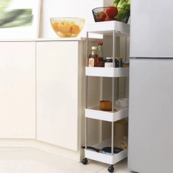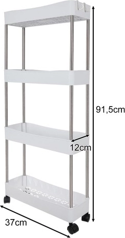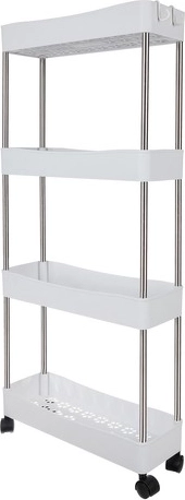Mobilní policový regál RUHHY je univerzální řešení pro úsporu místa v úzkých mezerách i běžných zónách domácnosti. Díky modulární konstrukci si snadno přizpůsobíte počet pater podle potřeby a využijete jej v koupelně na kosmetiku a čistící prostředky, v kuchyni na koření a láhve, v pracovně na dokumenty či v prádelně na detergenty.