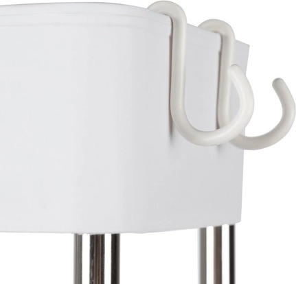 Perforované dno zlepšuje cirkulaci vzduchu a odvod vlhkosti. Boční háčky poskytnou místo pro ručníky a drobné doplňky.