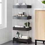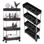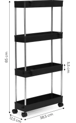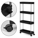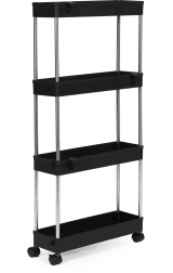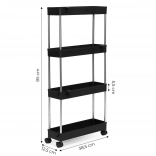 Udržte si pořádek i v úzkých prostorech. Tento úzký plastový regál ModernHome nabízí velkorysé úložné místo na 4 policích pro kosmetiku, ručníky, čisticí prostředky či potraviny. Díky štíhlému profilu se skvěle vejde mezi skříňky, pračku nebo vedle sprchového koutu.