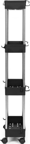 Kolečka s brzdou umožní plynulý přesun, dvě z nich lze zaaretovat pro bezpečné a stabilní stání. Hliníkové trubky zpevňují celou konstrukci a dodávají jí moderní vzhled. 8 přídavných háčků poskytne místo na ručníky, žínky či kuchyňské náčiní.