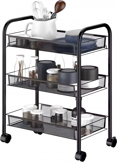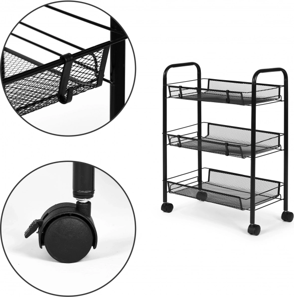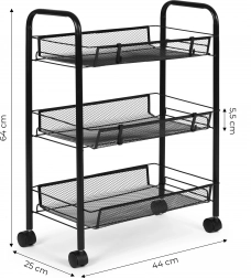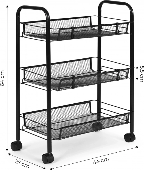 Praktický a stylový pomocník pro každý domov. Úzké proporce regálu umožní využít i méně dostupná místa, zatímco tři prostorné košíkové police pojmou kosmetiku, čisticí prostředky, koření, nádobí či kancelářské potřeby. Odolný kov zaručuje stabilitu a dlouhou životnost.