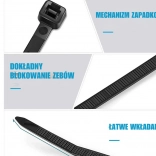 Sada 100 černých kabelových stahovacích pásek širokých 3,6 mm je nepostradatelným nástrojem pro domácnost, zahradu nebo dílnu. Snadné použití a vysoká odolnost zajišťují jejich širokou využitelnost.
