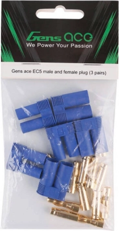 Sada 3 párů konektorů EC5 Gens Ace pro RC modely. Spolehlivé, nízký odpor a vysoká proudová zatížitelnost. Ideální pro akumulátory a regulátory.