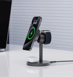 Bezdrátová nabíječka Aukey MagFusion 3 v 1 umožňuje nabíjet až tři zařízení najednou s výkonem až 15 W, což zajišťuje rychlé a účinné napájení. Technologie Qi2 s magnetickým vyrovnáním minimalizuje energetické ztráty.