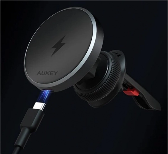 Magnetický držák do auta s bezdrátovým nabíjením 15 W AUKEY Qi2 (černý)