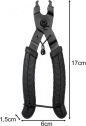Přesné čelisti umožní bleskové rozpojení a opětovné spojení rychlospojky řetězu – ideální pro rychlou údržbu doma, v dílně i na cestách.