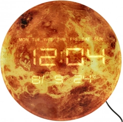 Designové hodiny s realistickou grafikou planety Mars se stanou dominantou každého interiéru – od dětského pokoje až po pracovnu. Přehledný LED displej nabízí čas ve formátu 12/24 h, datum (M/D/R), anglický zkratkový den v týdnu a aktuální teplotu v °C.