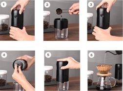 Pomocí plynulé regulace hrubosti nastavíte mletí přesně podle svého způsobu přípravy – od jemného na espresso až po hrubší pro french press. Napájení přes USB‑C umožňuje použít notebook, powerbanku nebo nabíječku, takže si čerstvou kávu připravíte doma, v kanceláři i na cestách.