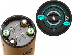 Mlýnek je vybaven tichým motorem, který rychle mletí koření od soli a pepře až po exotické směsi.