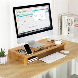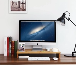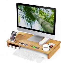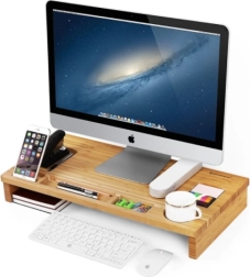 Vylepšete své pracovní místo stylovým stojanem z bambusu, který kombinuje ergonomii a organizaci. Zvednutím monitoru do úrovně očí snižuje zatížení krku a zad, zatímco promyšlené přihrádky udrží všechny nezbytnosti po ruce – od telefonu přes psací potřeby až po hrnek.