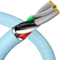 Kabel je vyroben z odolného plastu a zakončen hliníkovou slitinou, což jej činí odolným vůči zamotání a jinému opotřebení. Konektor kabelu prošel mnoha testy odolnosti, což zaručuje jeho dlouhou životnost. Díky měděnému jádru je zajištěno rychlejší nabíjení a lepší vodivost, zatímco chytrý čip monitoruje teplotu pro zajištění bezpečnosti zařízení.